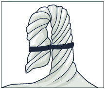 Goose necked heavy plastic bags should be used for items that must be kept dry but are too large for zip-lock bags, like a sleeping bag. The gooseneck closure is formed by twisting the bag end, folding it over, then fastening it in place with a rubber band or twine. If a stuff sack is lined with a plastic bag and is going to be compressed using webbing straps and buckles refrain from tying down the gooseneck until the compression is nearly complete or poke a pin hole in the bag to allow the remaining air to escape.