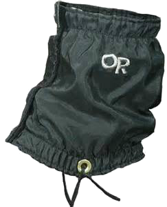 shoes, even if they are waterproof. Waterproof pants that cover the boots will prevent this. Another solution, especially if you are hiking in shorts, is to use gaiters. These are like pants legs from the knee down. They attach at the top with elastic and/or a draw string and often strap under the boot to prevent them from "riding up with wear." They are also good protection in brushy areas and provide some protection from low lying poisonous plants or bugs.