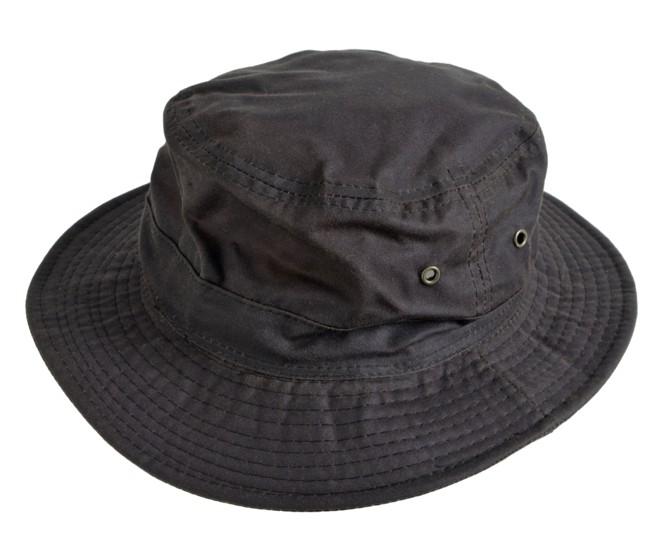 You wouldn't think a cloth hat would keep you dry, but it does. Water is wicked to the edge of the rim, where it falls off. Water-resistant coated hats are also available. The wide rim also provides an effective sun shade and prevents things from "dropping down your neck." Vents are a feature to look for. They allow body moisture to escape during warm weather and high humidity that would otherwise be trapped. Rain will run around grommet vents and off the hat.